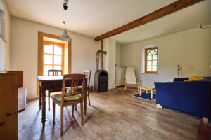 Im Innenhof gibt es eine Feuerstelle, also abends kann auch dem Feuer gelauscht werden.